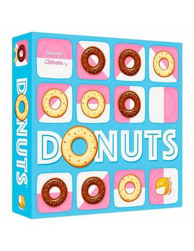 Un duelo táctico y dulce para 2 jugadores. Escoge al azar las 4 secciones de tablero para formar un tablero de juego mayor, cuadrado de 6×6 casillas. Cada jugador toma 15 donuts y escoge uno de los dos sabores como el suyo, (vainilla o chocolate).
